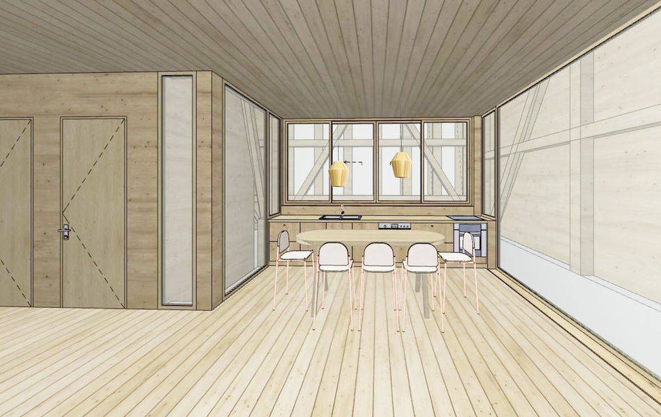 Conception d'un espace co-working dans un ancien séchoir à tabac situé dans un village du Vully. Dans ce projet, la structure du hangar est conservée dans le but de préserver ce patrimoine. Une structure indépendante sera construite à l'intérieur pour faire perdurer ce lieu et lui offrir une seconde vie.
